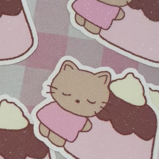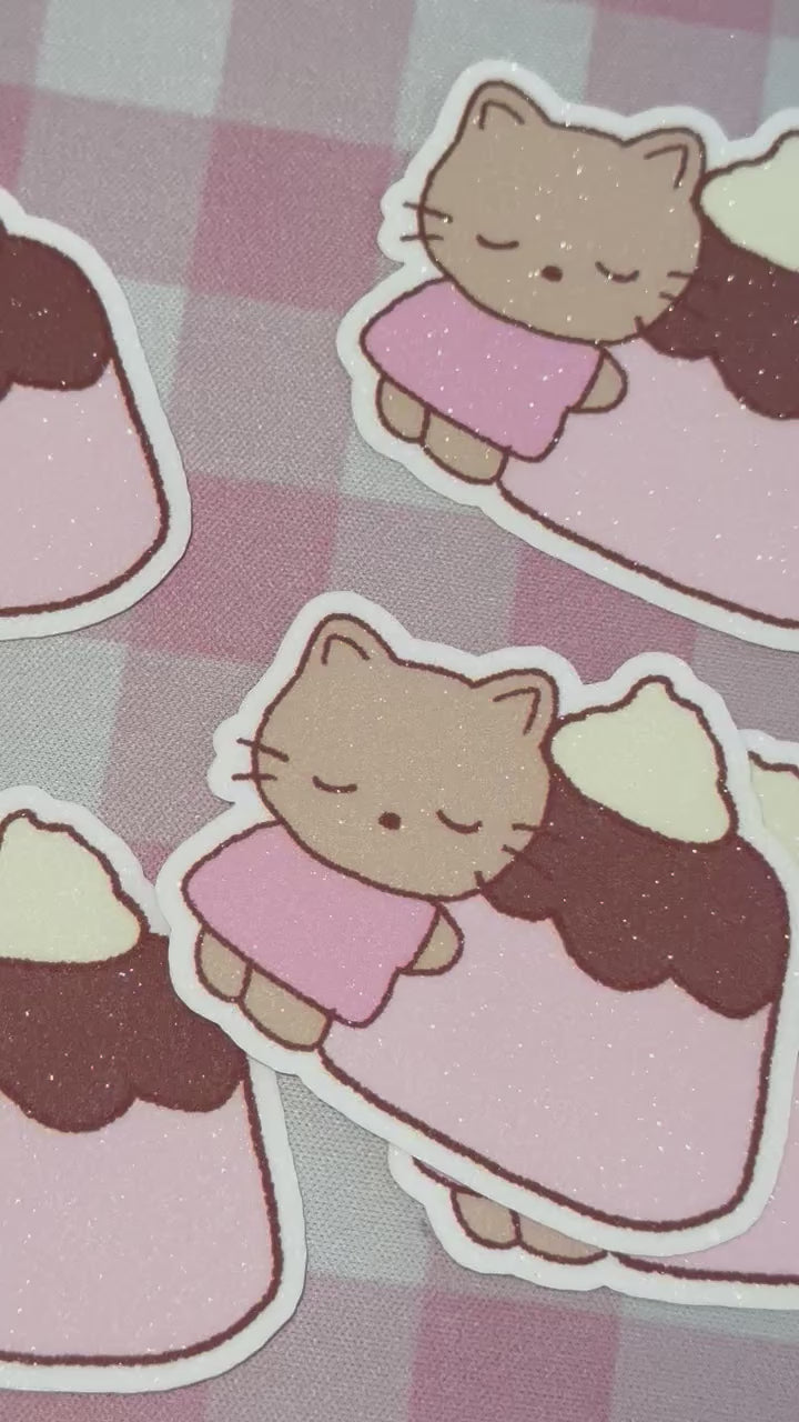 Brown cat pudding glitter sticker flake