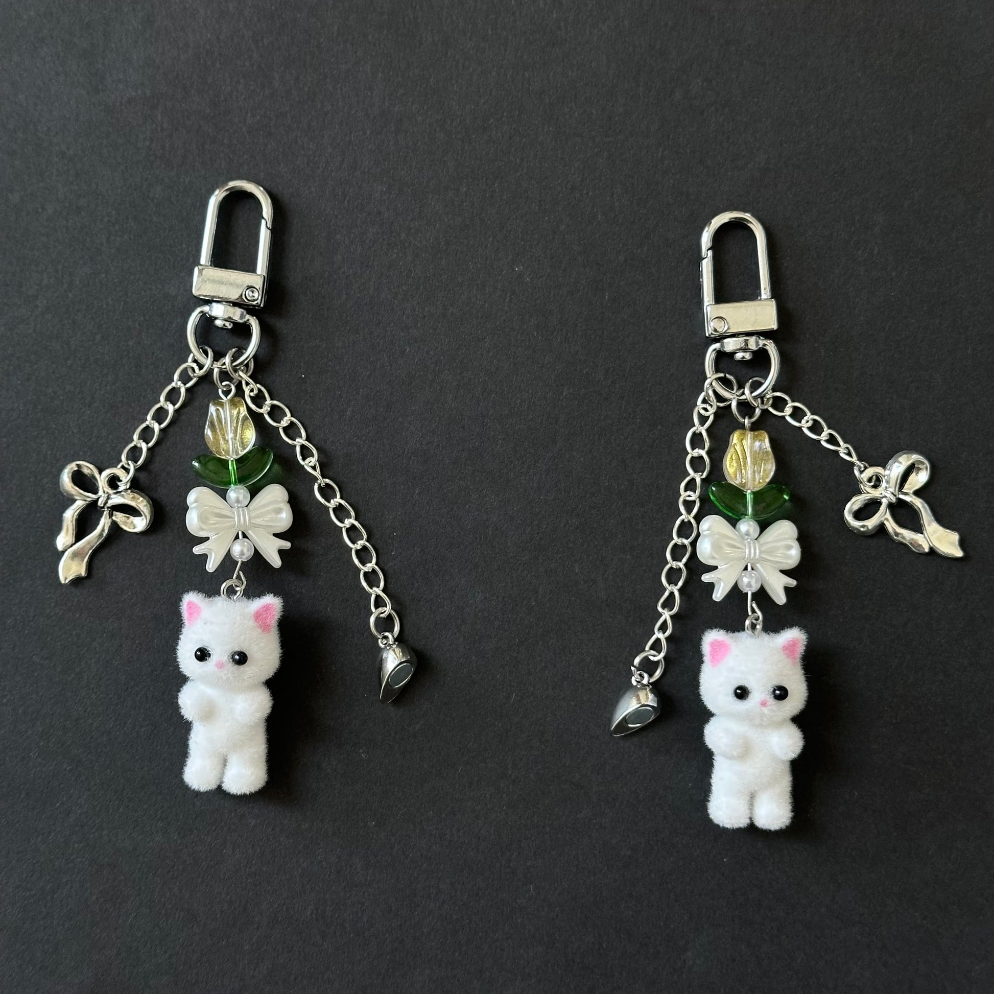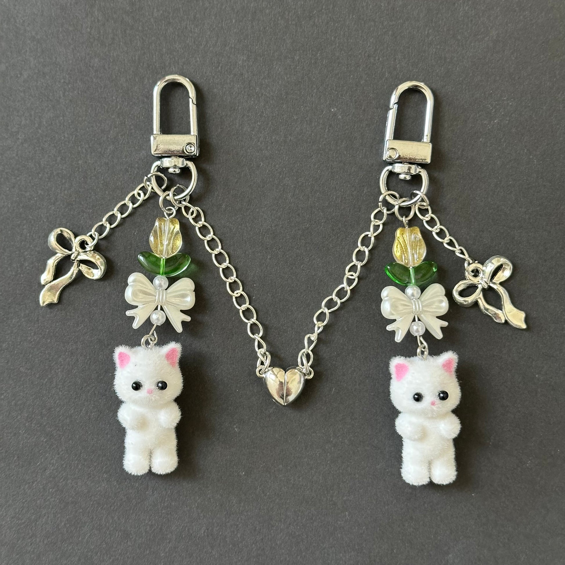 Matching kitten handmade keychain set